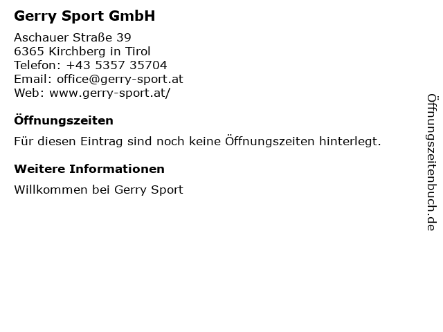 | Öffnungszeiten Gerry Sport GmbH in Kirchberg in Tirol anzeigen | |