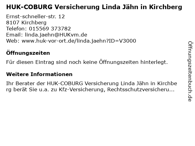 | HUK-COBURG Versicherung Linda Jähn in Kirchberg anrufen | |