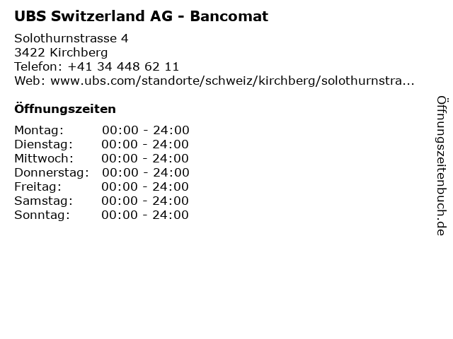 Öffnungszeiten UBS Switzerland AG - Bancomat