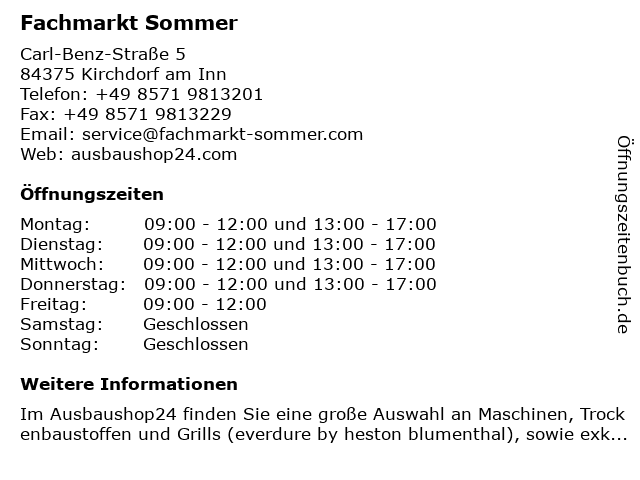 | Öffnungszeiten Fachmarkt Sommer in Kirchdorf am Inn anzeigen | |