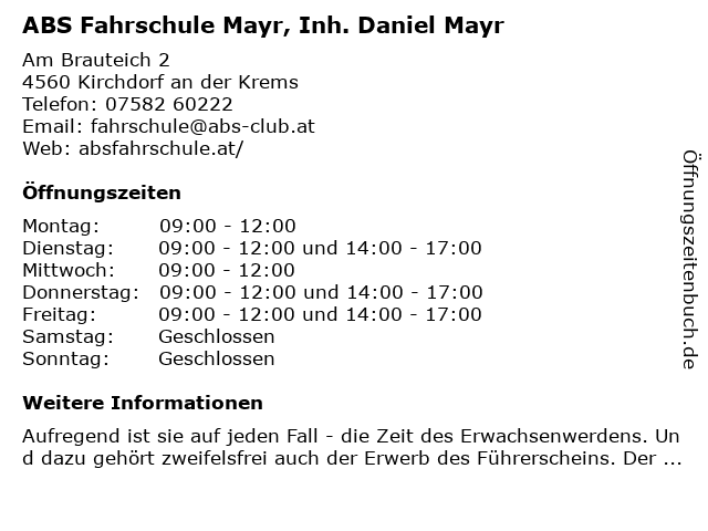 Branchen & Suchbegriffe zu ABS Fahrschule Mayr, Inh. Daniel Mayr:abs, daniel, fahrschule, mayr |