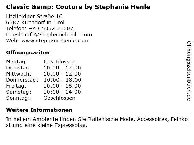 Branchen & Suchbegriffe zu Classic & Couture by Stephanie Henle:antipasti, boutique, by, cashmere, classic, couture, damenmode, espressobar, feinkostladen, henle, italienische feinkost, italienische mode, italienische mode st. johann, italienische schuhmode, italienische spezialitäten, mode st. johann, mode und schuhe, modeboutique, modegeschäft, online boutique, personal shopping, private shopping, schuhmode, shopping date, stephanie |