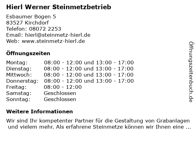 Branchen & Suchbegriffe zu Hierl Werner Steinmetzbetrieb:hierl, steinmetzbetrieb, werner |