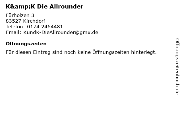| Öffnungszeiten K&K Die Allrounder in Kirchdorf anzeigen | |