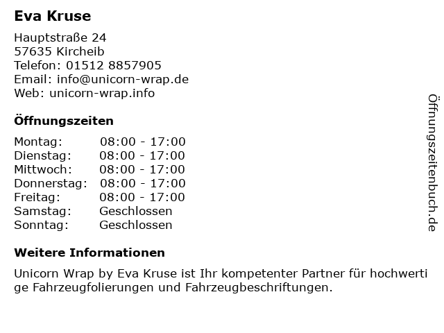 | Öffnungszeiten Eva Kruse in Kircheib anzeigen | |