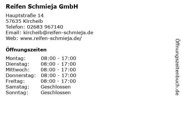 | Öffnungszeiten Reifen Schmieja GmbH in Kircheib anzeigen | |