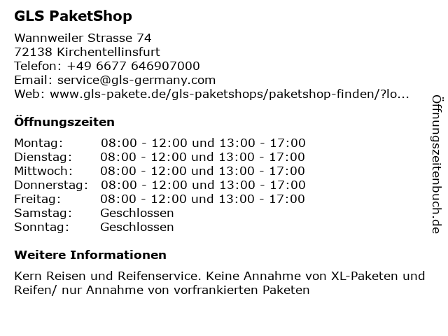 | Öffnungszeiten GLS PaketShop in Kirchentellinsfurt anzeigen | |