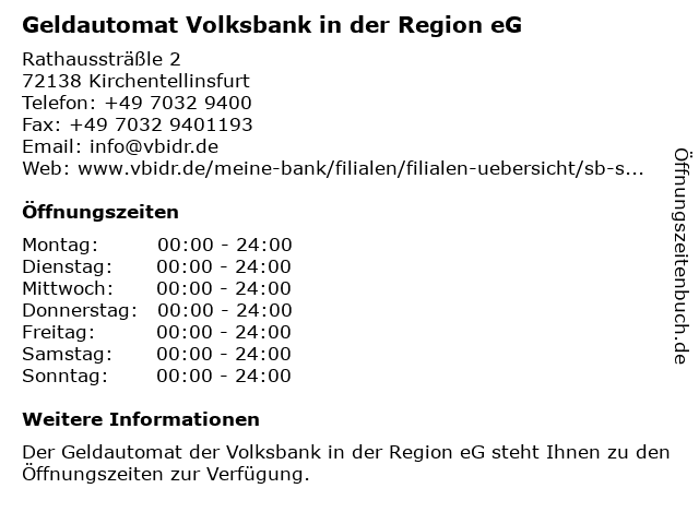 1 Geldautomat Volksbank in der Region eG (Entfernung: 2,29 km) Kirchentellinsfurter Straße 4, 72127 Kusterdingen 6 |