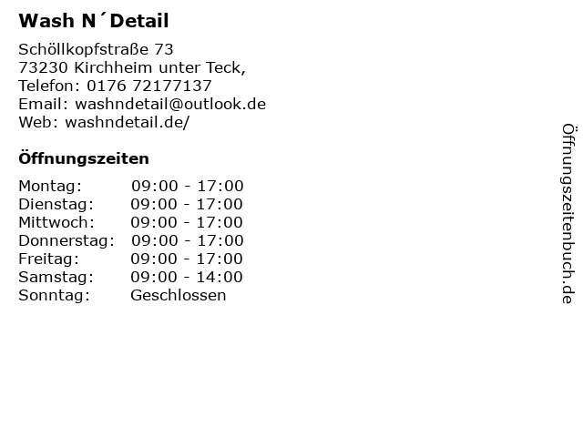 | Öffnungszeiten Wash N´Detail in Kirchheim unter Teck, anzeigen | |