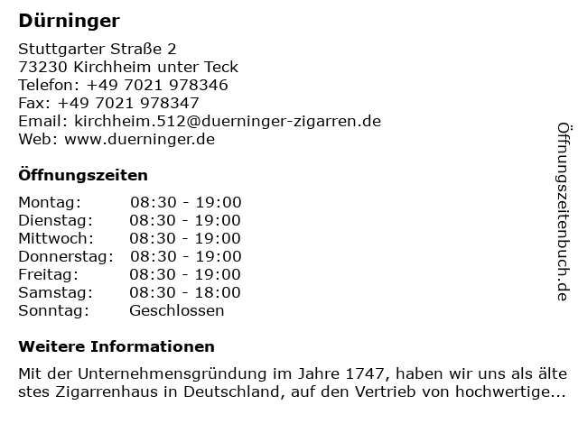 | Öffnungszeiten Dürninger in Kirchheim unter Teck anzeigen | |