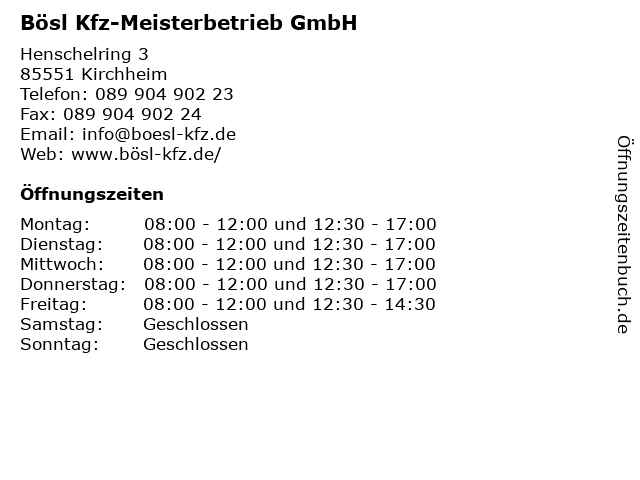 1 KFZ Meisterbetrieb Helmut Vorleitner e.K. (Entfernung: 0,08 km) Henschelring 5, 85551 Kirchheim bei München 3 Sift Elektroanlagen Meisterbetrieb der Elektroinnung (Entfernung: 0,82 km) Kreuzstr. 2, 85551 Kirchheim 4 6 Götz Orthopädie - Schuhtechnik Meisterbetrieb (Entfernung: 10,43 km) Johanneskirchner Str. 2, 81925 München |