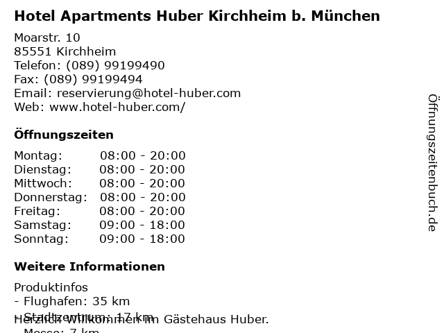 Branchen & Suchbegriffe zu Hotel Apartments Huber Kirchheim b. München:apartmenthotel, apartments, appartements, b., boardinghouse, business-hotel, hotel, huber, messehotel, zimmer mit frühstück, zimmer ohne frühstück |