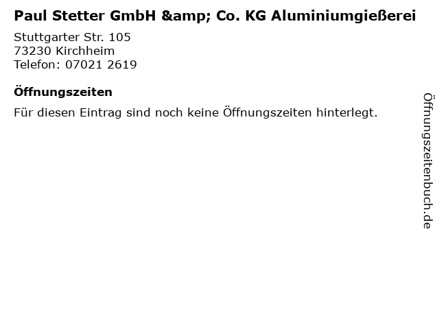 | Paul Stetter GmbH & Co. KG Aluminiumgießerei anrufen | |