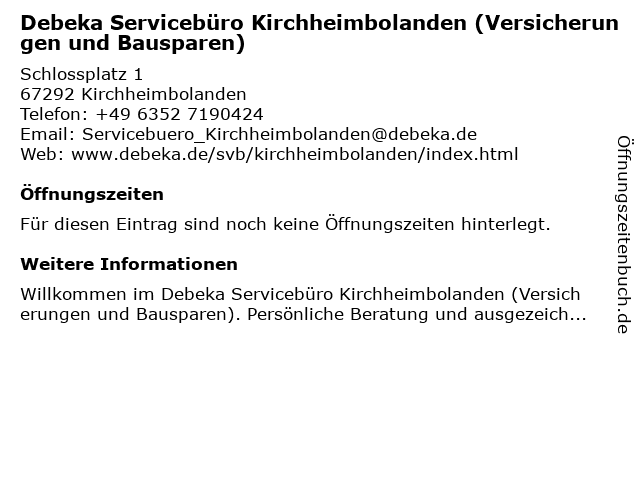 | Debeka Servicebüro Kirchheimbolanden (Versicherungen und Bausparen) anrufen | |