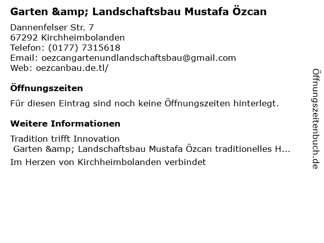 | Garten & Landschaftsbau Mustafa Özcan anrufen | |