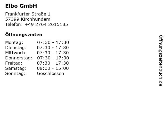 | Öffnungszeiten Elbo GmbH in Kirchhundem anzeigen | |