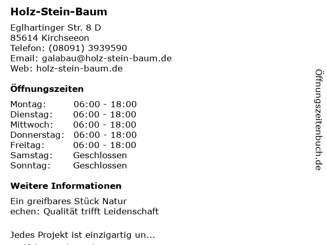 | Öffnungszeiten Holz-Stein-Baum in Kirchseeon anzeigen | |