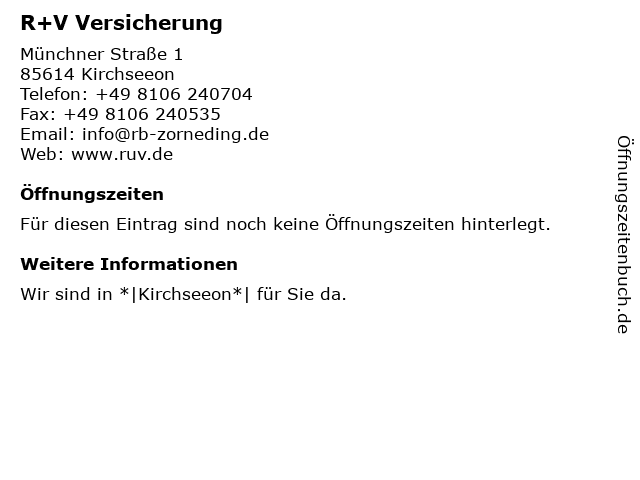 | Öffnungszeiten R+V Versicherung in Kirchseeon anzeigen | |