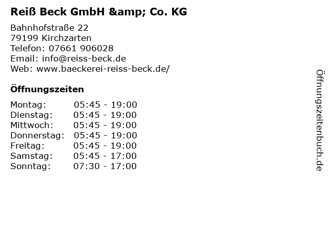 | Öffnungszeiten Reiß Beck GmbH & Co. KG in Kirchzarten anzeigen | |