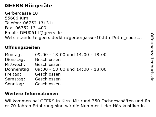 Hinweis: Willkommen bei GEERS in Kirn. Mit rund 750 Fachgeschäften und über 70 Jahren Erfahrung sind wir die Nummer 1 der Hörakustiker in Deutschland.