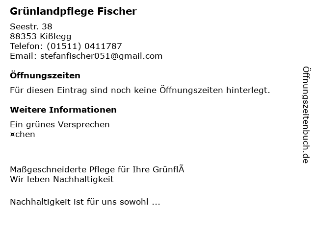 | Öffnungszeiten Grünlandpflege Fischer in Kißlegg anzeigen | |