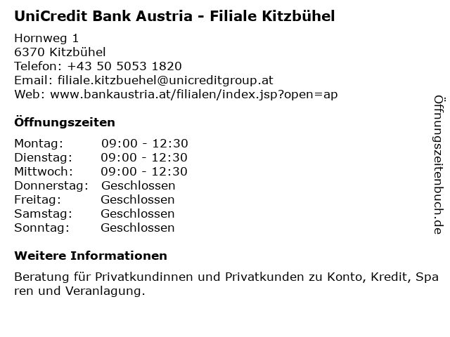Branchen & Suchbegriffe zu UniCredit Bank Austria - Filiale Kitzbühel:austria, bank, kitzbühel, privatkundinnen und privatkunden, unicredit |