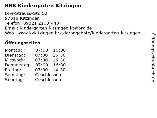 | Öffnungszeiten BRK Kindergarten Kitzingen in Kitzingen anzeigen | |