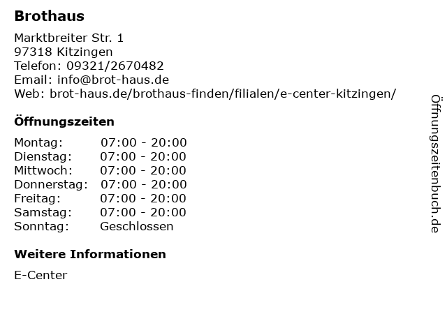 | Öffnungszeiten Brothaus in Kitzingen anzeigen | |