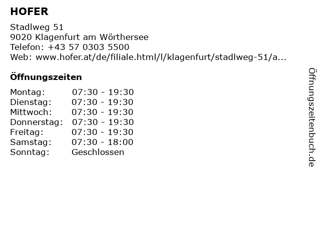 | Öffnungszeiten HOFER in Klagenfurt am Wörthersee anzeigen | |