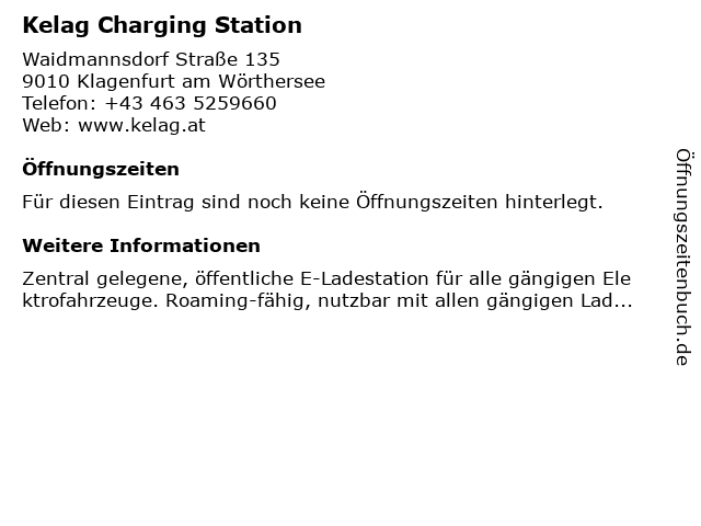 Kelag Charging Station in Klagenfurt am Wörthersee: Telefonnummer, Öffnungszeiten und Adresse