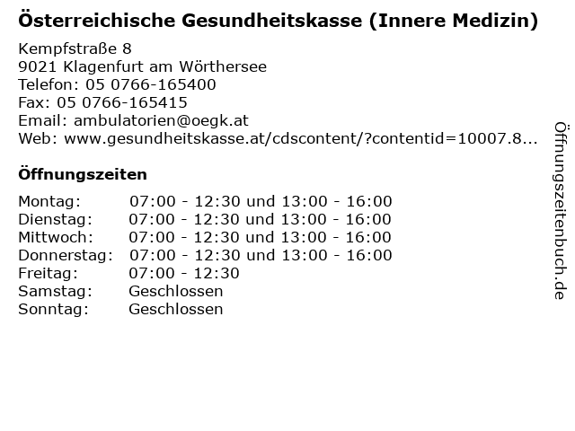 1 Österreichische Gesundheitskasse (Radiologie) (Entfernung: 0,00 km) Kempfstraße 8, 9021 Klagenfurt am Wörthersee 2 Österreichische Gesundheitskasse (Zahngesundheitszentrum) (Entfernung: 0,00 km) Kempfstraße 8, 9021 Klagenfurt am Wörthersee 3 Österreichische Gesundheitskasse - Medizinischer Dienst (Entfernung: 0,00 km) Kempfstr. 8, 9021 Klagenfurt 4 Österreichische Gesundheitskasse - Gesundheitszentrum für Vorsorgeuntersuchung (Entfernung: 0,00 km) Kempfstr. 8, 9021 Klagenfurt 5 Österreichische Gesundheitskasse - Zahngesundheitszentrum (Entfernung: 0,00 km) Kempfstr. 8, 9021 Klagenfurt 6 Österreichische Gesundheitskasse - Zahngesundheitsberatung (Entfernung: 0,00 km) Kempfstraße 8, 9021 Klagenfurt am Wörthersee |