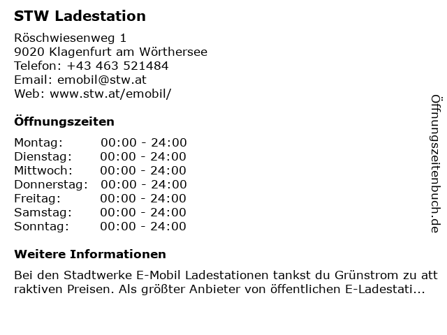 Öffnungszeiten STW Ladestation in Klagenfurt am Wörthersee anzeigen