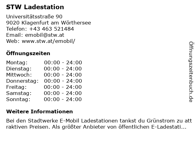 Öffnungszeiten STW Ladestation in Klagenfurt am Wörthersee anzeigen