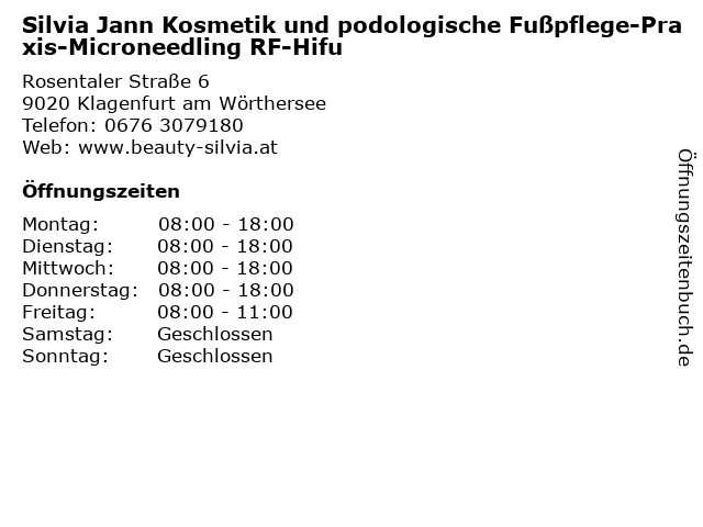 1 Silvia Jann Kosmetik und podologische Fußpflege-Praxis (Entfernung: 0,00 km) Rosentaler Straße 6, 9020 Klagenfurt am Wörthersee 3 Dr. Silvia Amberger Fachärztin für Frauenheilkunde & Geburtshilfe (Entfernung: 0,42 km) Villacher Straße 6/2, 9020 Klagenfurt 4 Silvia Wolf (ehem. Holzmann) - Praxis Equilibrio (Entfernung: 0,79 km) Radetzkystr.1/2 , 9020 Klagenfurt am Wörthersee 6 Klavora Christiane - medizinisch geschulte Fußpflege (Entfernung: 1,31 km) Rudolfsbahngürtel 80, 9020 Klagenfurt |