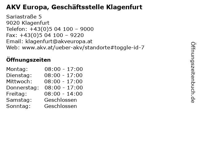Branchen & Suchbegriffe zu AKV Europa, Geschäftsstelle Klagenfurt:akv, bonitätsauskunft, bürozeiten, europa, geschäftsstelle, inkasso, klagenfurt, kreditorenverband |