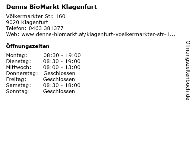| Öffnungszeiten Denns BioMarkt Klagenfurt in Klagenfurt anzeigen | |