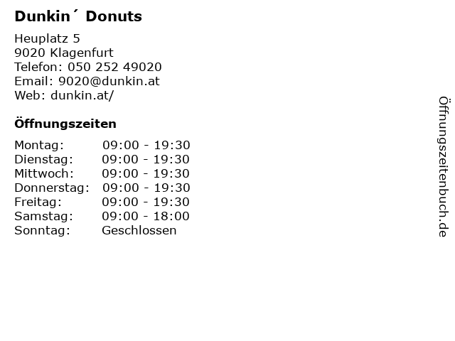 | Öffnungszeiten Dunkin´ Donuts in Klagenfurt anzeigen | |