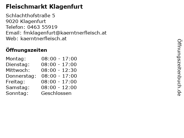| Öffnungszeiten Fleischmarkt Klagenfurt in Klagenfurt anzeigen | |