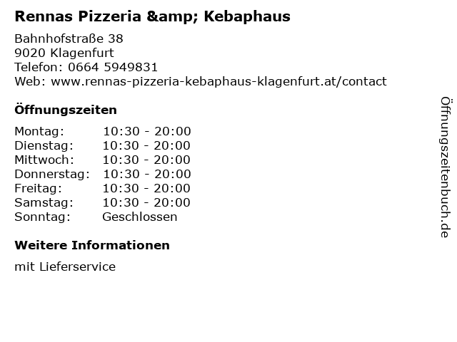 Branchen & Suchbegriffe zu Rennas Pizzeria & Kebaphaus:kebaphaus, pizzeria, rennas |