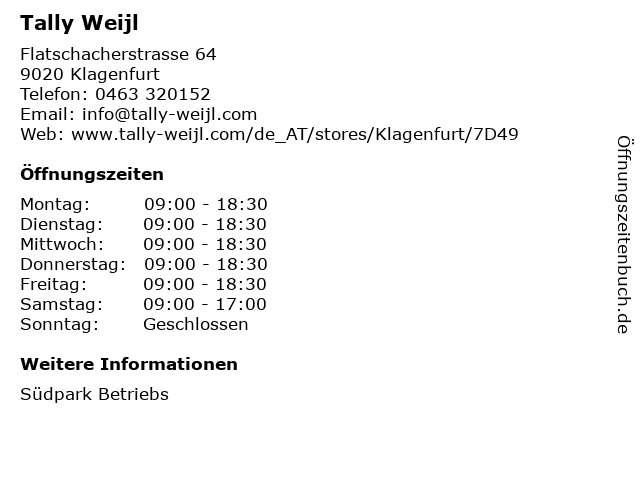 | Telefonnummer Tally Weijl in Klagenfurt (0463 320152) anrufen | |