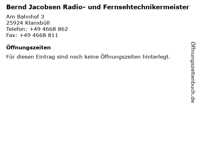 | Bernd Jacobsen Radio- und Fernsehtechnikermeister anrufen | |