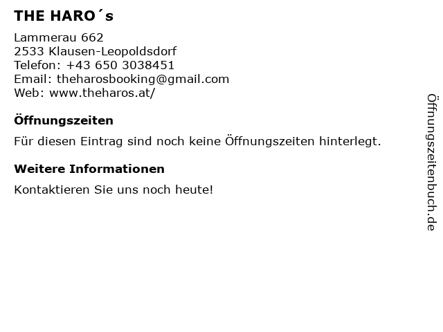 | Öffnungszeiten THE HARO´s in Klausen-Leopoldsdorf anzeigen | |