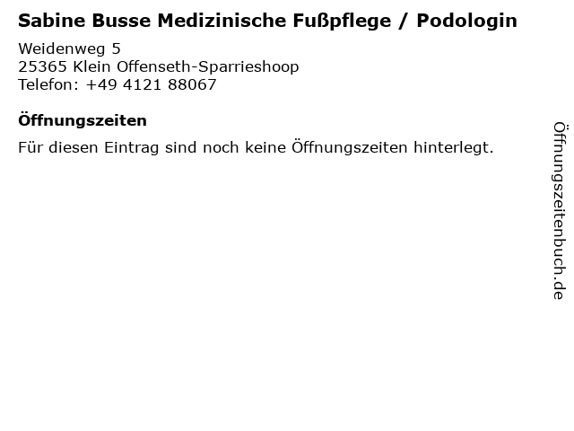 | Sabine Busse Medizinische Fußpflege / Podologin anrufen | |
