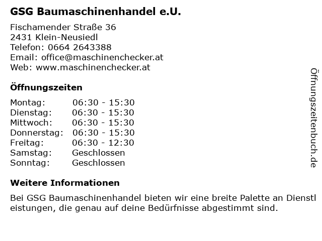 Branchen & Suchbegriffe zu GSG Baumaschinenhandel e.U.:baumaschinenhandel, e.u., gsg |