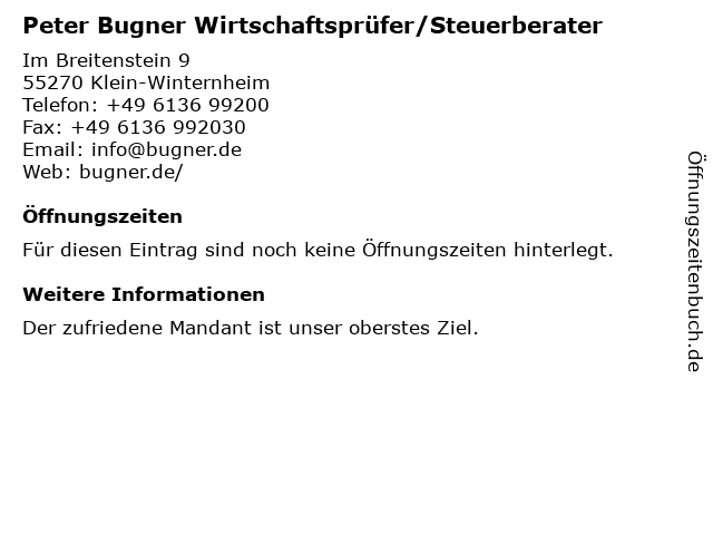 | Peter Bugner Wirtschaftsprüfer/Steuerberater anrufen | |