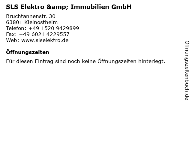 | SLS Elektro & Immobilien GmbH anrufen | |