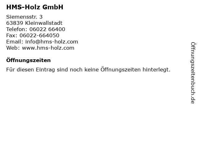 | Öffnungszeiten HMS-Holz GmbH in Kleinwallstadt anzeigen | |