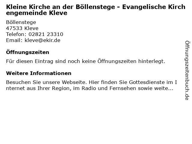 | Kleine Kirche an der Böllenstege - Evangelische Kirchengemeinde Kleve anrufen | |