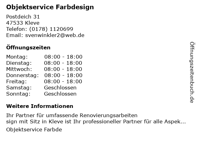 Öffnungszeiten Objektservice Farbdesign in Kleve anzeigen | |