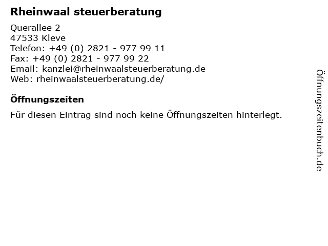 | Öffnungszeiten Rheinwaal steuerberatung in Kleve anzeigen | |